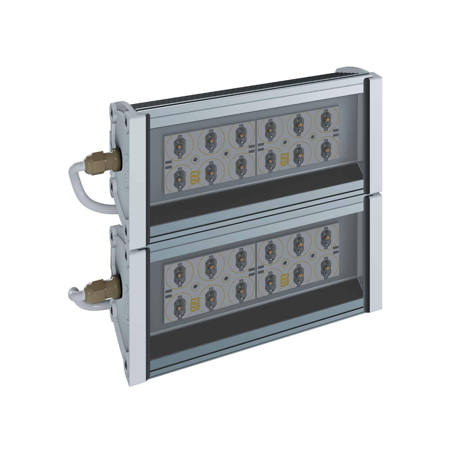 Возможность установки линз на каждый светодиод позволяет решать различные задачи управления световым потоком и оптимизировать количество светильников для правильной подсветки объекта. В светильнике применяются линзы с углом раскрытия светового потока 60х135°, тип КСС по ГОСТ 17677-82 соответственно Ш (широкая).