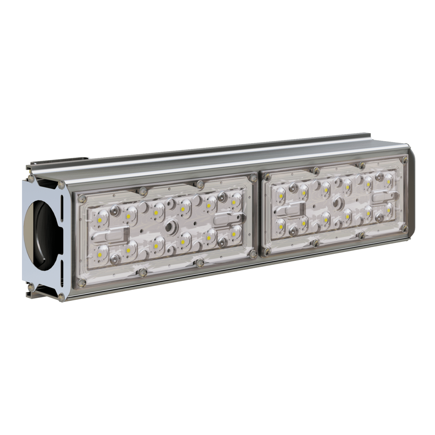 В светильнике применяются линзы с углом раскрытия светового потока 135х55° или с другими углами, исходя из технического задания Заказчика.