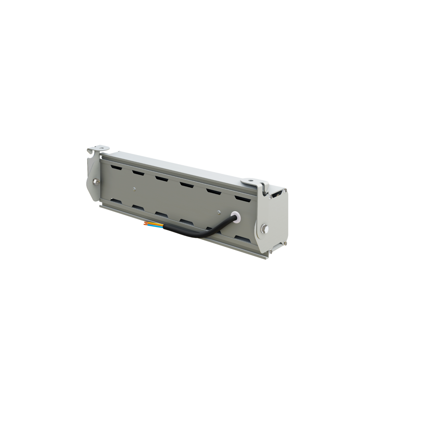 В светильнике разработан универсальный Г-образный кронштейн для монтажа на вертикальных и горизонтальных поверхностях, а также на трос.