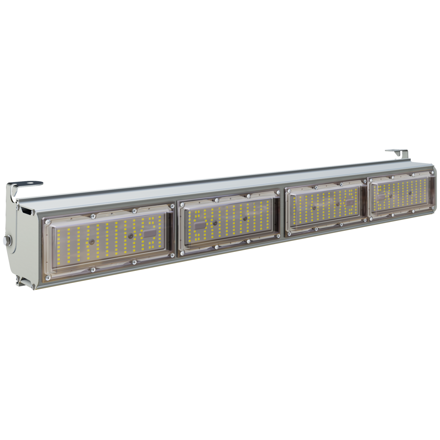 В светильнике разработан универсальный Г-образный кронштейн для монтажа на вертикальных и горизонтальных поверхностях, а также на трос.