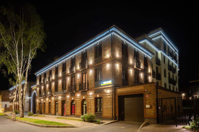 Декоративная подсветка выполняет всего одну, но важную задачу. Она нужна для создания эстетической привлекательности фасада здания и прилегающего ландшафта. За счет освещения придомовая территория МКД приобретает ухоженный и красивый вид.