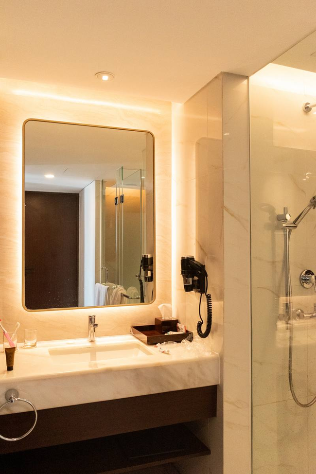 Ключевое правило для этой зоны — отсутствие теней на лице. Чтобы этого добиться, лампы ставят симметрично по бокам от зеркала на уровне глаз или чуть выше. Если установить ниже, то свет исказит пропорции лица. Альтернативный вариант — один длинный светильник сверху. Плафоны лучше выбирать матовые, они дают мягкий рассеянный свет. Использование зеркал со встроенной подсветкой также является хорошим решением для равномерного освещения.
