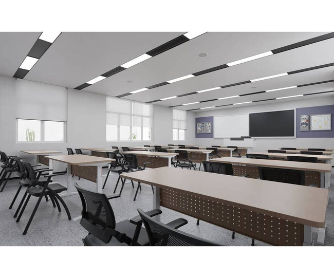 Общее обеспечивает равномерную освещенность всего пространства, а местное используется для подсветки конкретных зон, например классной доски или рабочего места учителя.