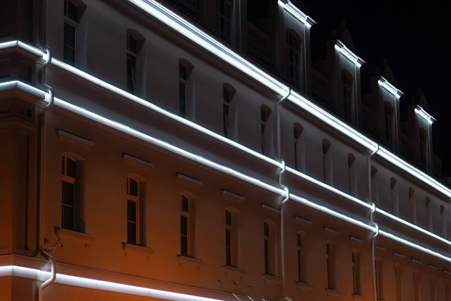 При организации такого типа освещения часто используют линейные светодиодные светильники и ленты, обеспечивающие равномерный и эффектный свет. Подсветка становится ключевым элементом в оформлении современных объектов, подчеркивает лучшие решения архитектурного дизайна, улучшает визуализацию, выделяет детали здания, создает запоминающийся образ.