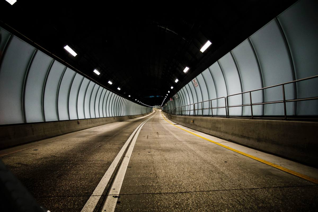 В дневное время освещение на въездной группе тоннеля делают максимально интенсивным, чтобы сократить контраст с уличным светом. По мере продвижения вглубь сооружения яркость плавно снижается до постоянного значения, поддерживаемого на всем протяжении внутренней части.