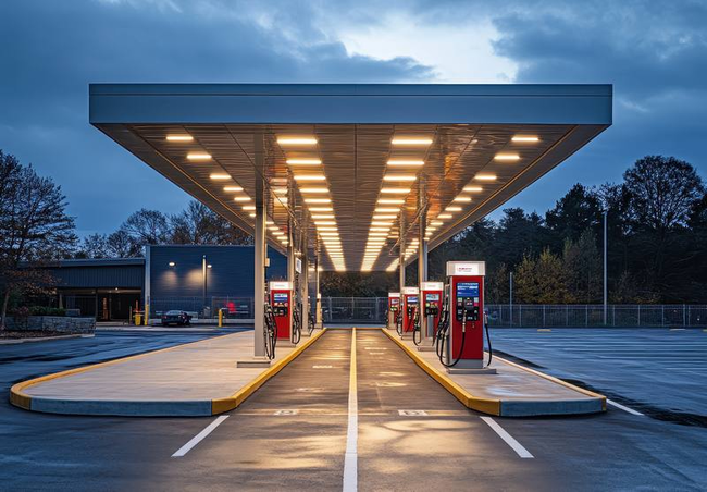 На территории автозаправочных станций используется комбинация различных типов приборов для достижения оптимальной освещенности во всех функциональных зонах.