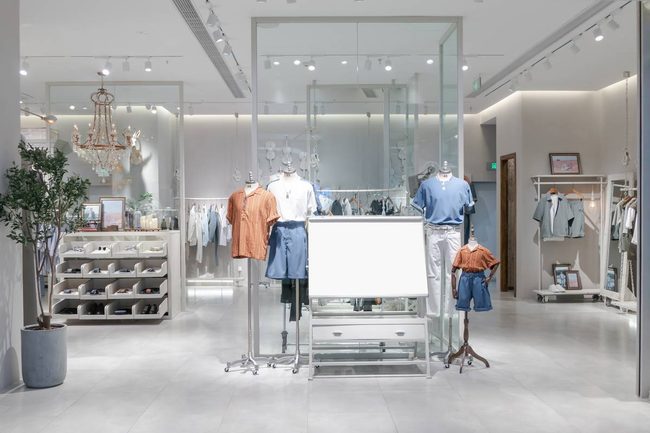 В магазинах мужской одежды часто используют более яркую подсветку, четкие световые линии и геометричность. Свет помогает создать сдержанную и деловую атмосферу. Минимализм в оформлении и направленные лучи света подчеркивают фактуру тканей и крой.