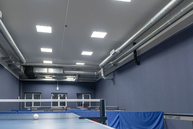 При организации светодиодного освещения важно избегать направленного света, который создает блики и мешает тренировкам. Оптимальный вариант: светильники с углом рассеивания не менее 100 градусов. Они могут встраиваться или располагаться на шинах (с регулировкой положения).