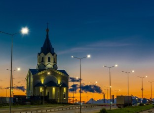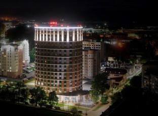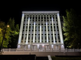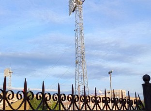 Выполнен светотехнический расчёт, подобраны модели прожекторов разной мощности и с разными углами раскрытия луча. В прожекторах регулируется угол наклона относительно вертикальной оси. Разработана специальная корона, на которой смонтированы прожекторы под нужным углом. Вес короны100 кг. Подключено питание прожекторов через блок грозозащиты с возможностью дежурного режима работы освещения.