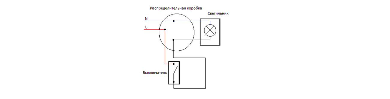 Для начала разберем простую электрическую схему одноклавишного выключателя. Она довольно проста: