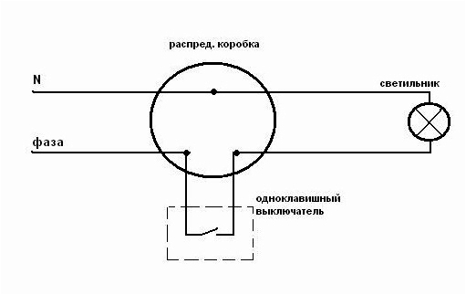 Представленная ниже схема подразумевает подключение обычного одноклавишного выключателя:
