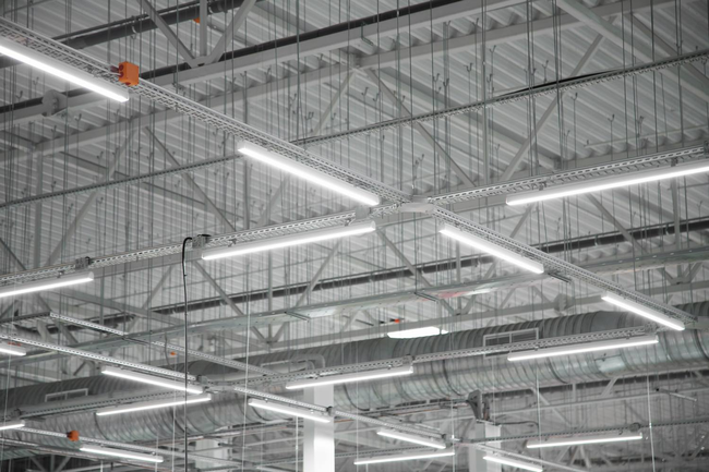 Подвесные LED-светильники применяются в помещениях с высокими потолками и большими площадями: на складах и в ангарах для равномерного освещения стеллажей и проходов складского помещения или в производственных цехах, где нужна точная цветопередача для работы с деталями.