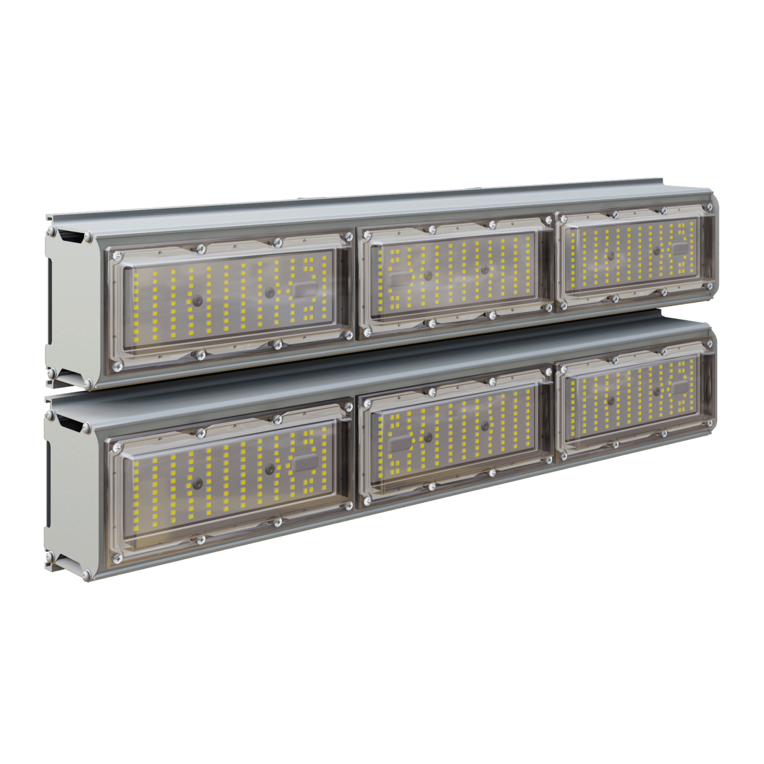 Также в светильнике предусмотрена защита от перенапряжения, кратковременных просадок напряжения и контроль температуры светодиодных модулей что позволяет ему оставаться работоспособным и без видимого изменения светового потока при скачках напряжения в сети.