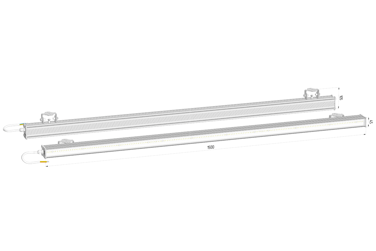 Корпус светильника выполнен из анодированного алюминиевого профиля, являющегося так же теплоотводом для светодиодного модуля. С торцов профиль закрывается заглушками установленными на высокоэластичный силиконовый клей-герметик.