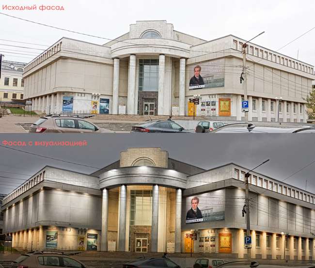 Локальное освещение: применяется для создания световых акцентов на небольших участках здания, например, на скульптурных композициях или барельефах