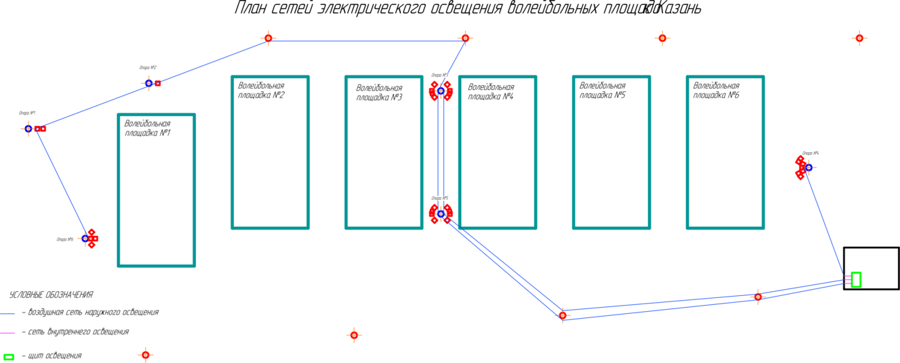 Данная схема после одобрения заказчиком становится техническим заданием на разработку системы освещения пляжных кортов.