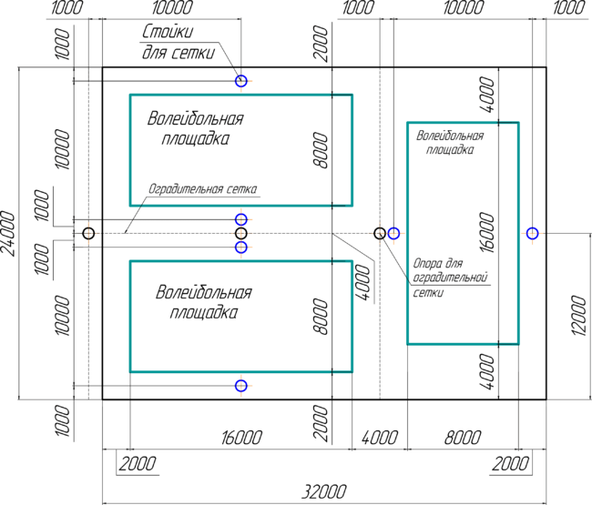 На втором этапе, на основе полученных от заказчика данных инженер-проектировщик разрабатывает схему расположения кортов, указывая их размеры и отмечая на схеме установку волейбольных стоек и других столбов для натягивания защитной (заградительной) сетки (если они, конечно, есть).