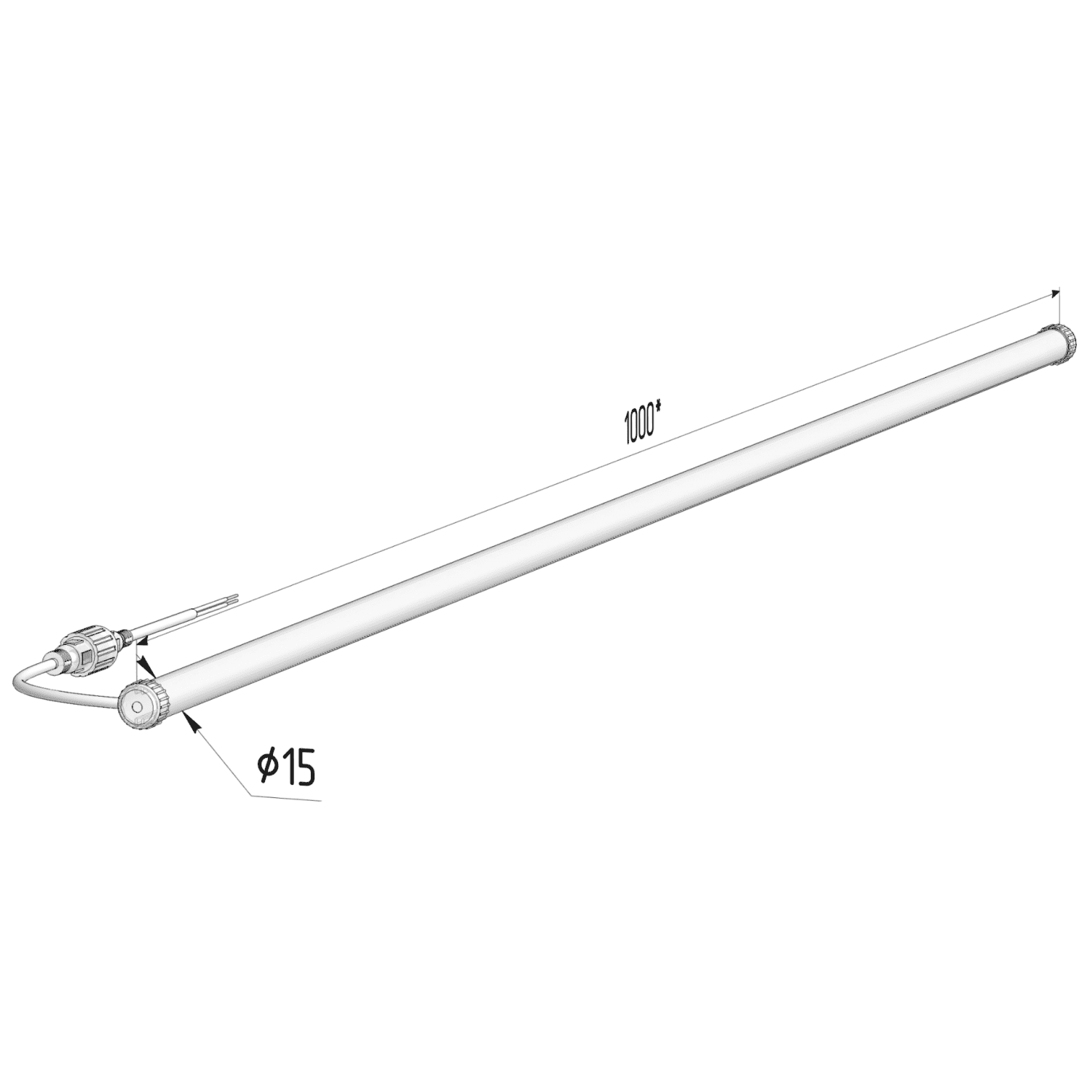 Корпус светильника изготовлен из ударопрочного оптического поликарбоната в форме трубы диаметром 15 мм. Торцы трубы закрываются заглушками, установленными на эластичный силиконовый клей-герметик. Возможно размещение светильников в непрерывную линию длиной до 30 метров.