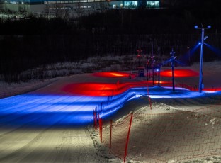 Выполнен светотехнический расчёт. Подобраны светильники с нужными параметрами, произведён расчёт углов раскрытия и углов наклона каждого светильника. Выполнен монтаж светильников собственного производства из алюминиевого профиля с широкой вторичной оптикой — серия ДКУ мощностью 95 и 127 Вт. Достигнута освещённость в соответствии с СП 52.13330.2016